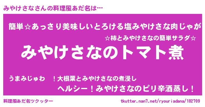 | ヘコむあだ名 | 『みやけさな(苦笑)』『レバニラ』 |
