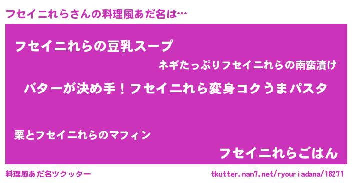 | 女子向けラノベタイトル風あだ名 | 『フセイニれら恋絵巻』 |