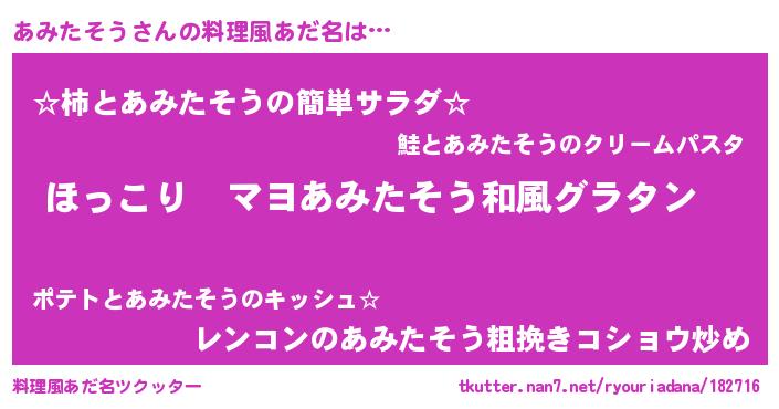 | ヒーロー風カッコイイあだ名 | 『仮面アミダー』『友情の使者あみたそう』 |