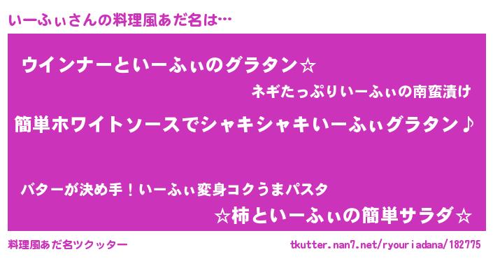 | 女子向けラノベタイトル風あだ名 | 『いーふぃ様がみてる』『いーふぃ恋絵巻』 |