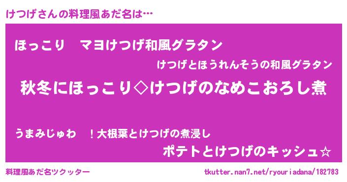 | 意味不明あだ名 | 『住所不定無職けつげ(71歳)』 |