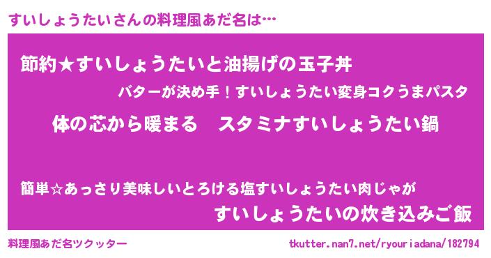 | 意味不明あだ名 | 『すいしょうたいフォーエバー』 |