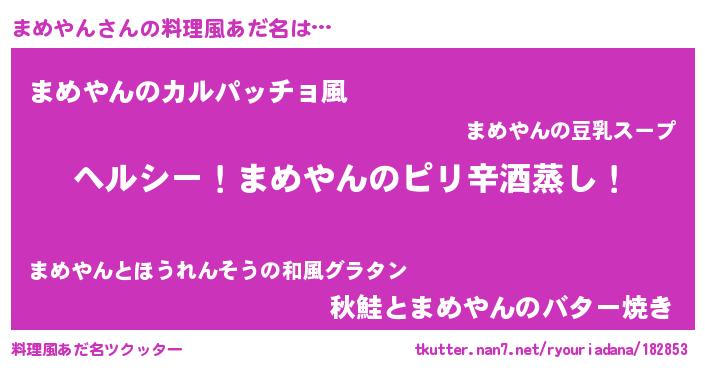 | 男性向けラノベタイトル風あだ名 | 『Re:まめやんから始める異世界生活』 |