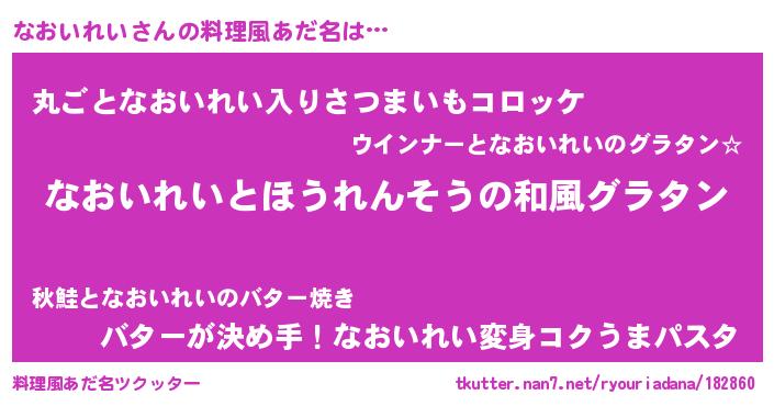 | 男性向けラノベタイトル風あだ名 | 『なおいれい~年齢イコール彼女いない歴の魔法使い~』 |