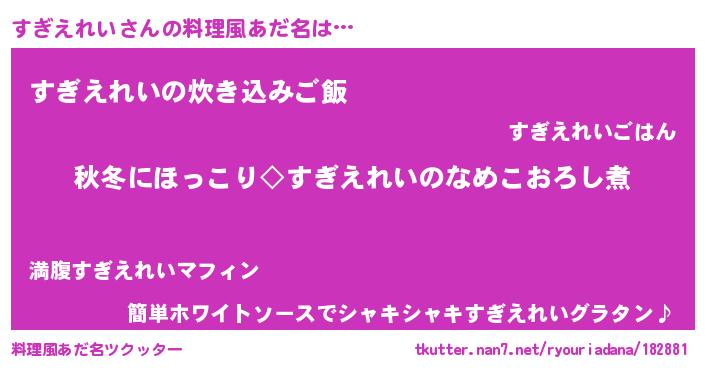 | ヘコむあだ名 | 『すぎを』『すぎえれい(笑)』『豆乳』 |