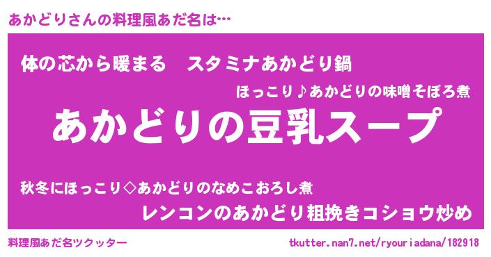 | 意味不明あだ名 | 『とにかく怪しいあかどり』 |