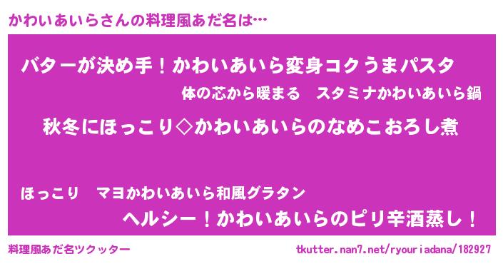 | 男性向けラノベタイトル風あだ名 | 『かわいあいらに滅ぼされるだけの簡単なお仕事です』 |