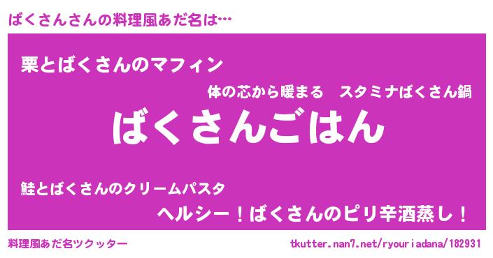 | 意味不明あだ名 | 『めかぶ科ばくさん属』『自称ばくさん』 |