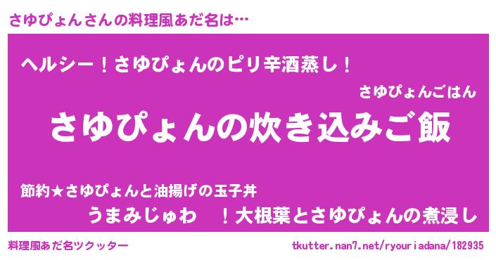 | 男性向けラノベタイトル風あだ名 | 『うちのさゆぴょんが世界を掌握している!』 |