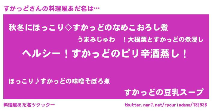 | 男性向けラノベタイトル風あだ名 | 『Re:すかっどから始める異世界生活』 |