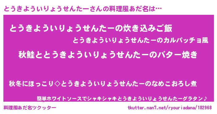 | ヘコむあだ名 | 『とうきよういりょうせんたー(爆)』 |