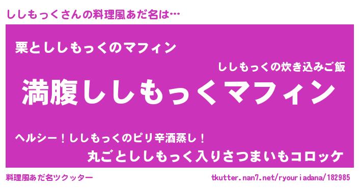 | 男性向けラノベタイトル風あだ名 | 『ししもっくという概念が存在しない退屈な世界 』 |