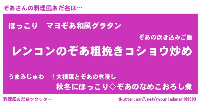 | ヘコむあだ名 | 『つくし』『ぞあもー』『ぞあお』 |