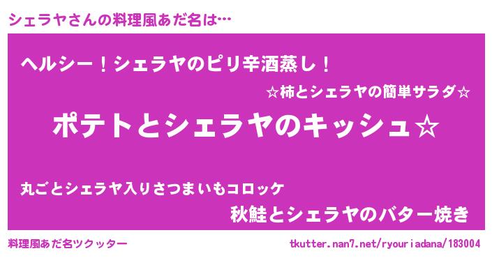 | ヘコむあだ名 | 『シェっ子』『シェラヤ(笑)』 |