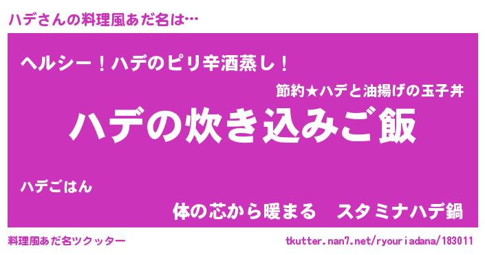 | ヘコむあだ名 | 『レバニラ』『ハデにー』『ハデお』 |