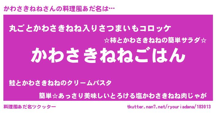 | ヒーロー風カッコイイあだ名 | 『仮面カワダー』『ネオカワサキネネ』 |