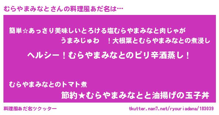 | ヘコむあだ名 | 『むらやまみなと(笑)』『むらにー』 |
