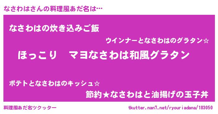 | 意味不明あだ名 | 『住所不定無職なさわは(50歳)』 |