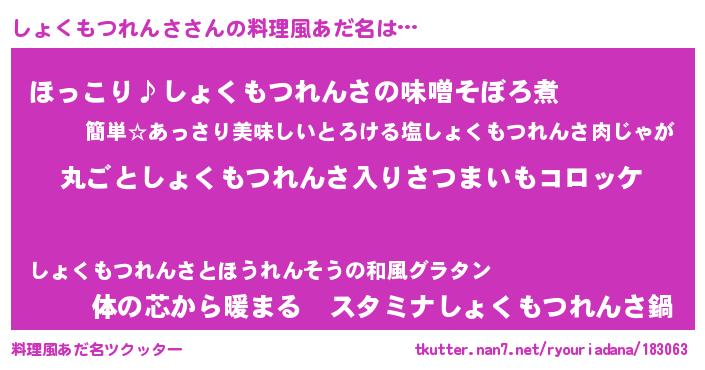 | 男性向けラノベタイトル風あだ名 | 『この素晴らしい世界にしょくもつれんさを!』 |