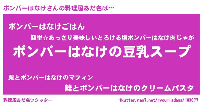 | 女子向けラノベタイトル風あだ名 | 『ボンバーはなけは平凡を望む』 |