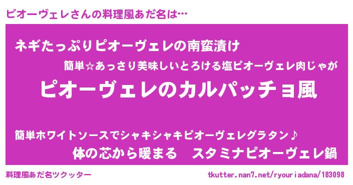 | 意味不明あだ名 | 『住所不定無職ピオーヴェレ(84歳)』 |
