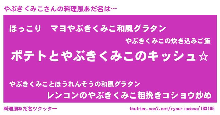 | ポケモン風あだ名 | 『ヒヤブキクミコ』『ヤーブイ』 |