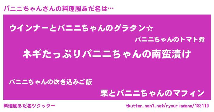 | 男性向けラノベタイトル風あだ名 | 『バニニチャンアートオンライン』 |
