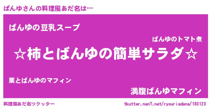 | 胡散臭い通販商品みたいなあだ名 | 『信頼と実績のサプリメント…その名も「ばんゆ」』 |