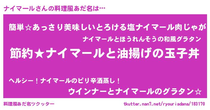 | ヘコむあだ名 | 『ナイにー』『ナイマール(笑)』 |