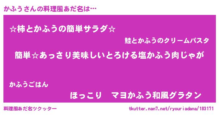 | 欧米人風あだ名 | 『ダルビッシュかふう』『ダニエルかふう』 |