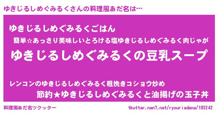 | 女子向けラノベタイトル風あだ名 | 『ゆきじるしめぐみるくは平凡を望む』 |