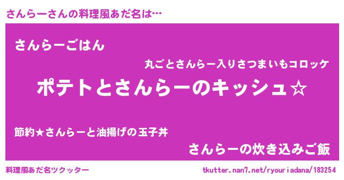 | 胡散臭い通販商品みたいなあだ名 | 『伝統あるサプリメント…その名も「さんらー」』 |