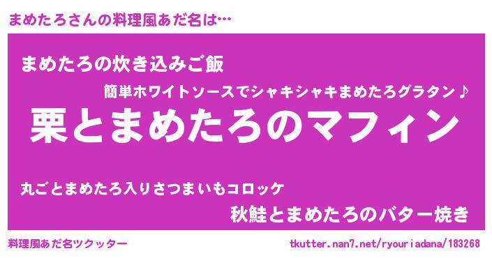 | 胡散臭い通販商品みたいなあだ名 | 『絶対に幸福をもたらす健康食品…その名も「まめたろ」』 |