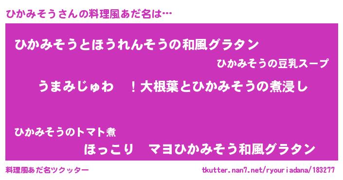 | 肩書あだ名 | 『ひかみそう国家主席』『ひかみそう中佐』 |