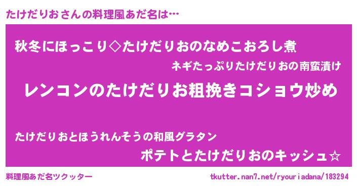 | 意味不明あだ名 | 『自称たけだりお』『ペロリンたけだりお』 |