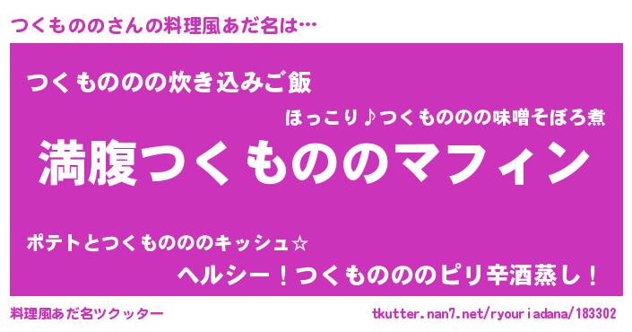 | 胡散臭い通販商品みたいなあだ名 | 『絶対に幸福をもたらす健康食品…その名も「つくものの」』 |