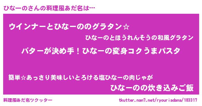 | 女子向けラノベタイトル風あだ名 | 『ひなーの恋絵巻』『ひなーの伯爵の花嫁』 |