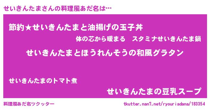 | 女子向けラノベタイトル風あだ名 | 『せいきんたまの玉の輿計画!』 |