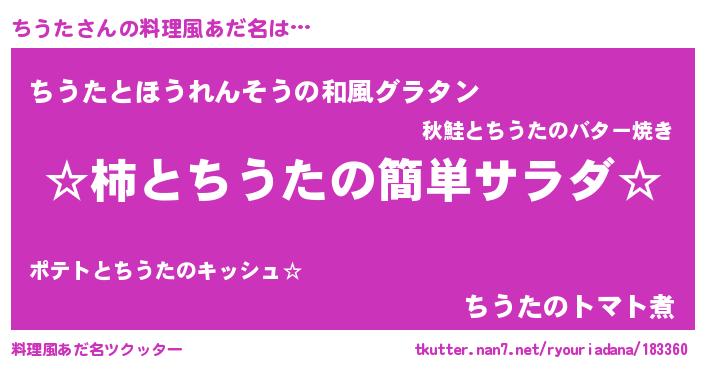 | 意味不明あだ名 | 『なめこ科ちうた属』『永久保存ちうた』 |