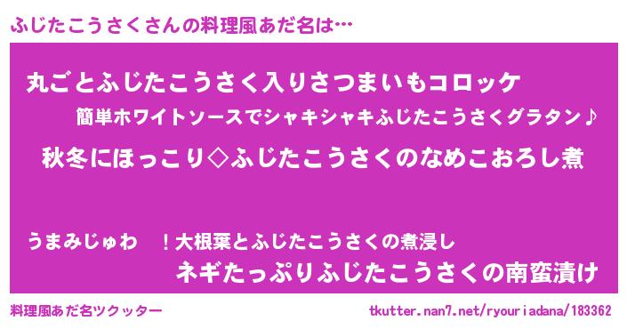 | 意味不明あだ名 | 『住所不定無職ふじたこうさく(89歳)』 |