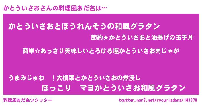| 胡散臭い通販商品みたいなあだ名 | 『前代未聞の健康食品…その名も「かとういさお」』 |
