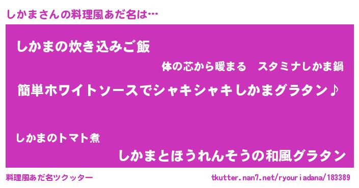 | 男性向けラノベタイトル風あだ名 | 『しかまの嫁は女の子じゃないと思った?』 |