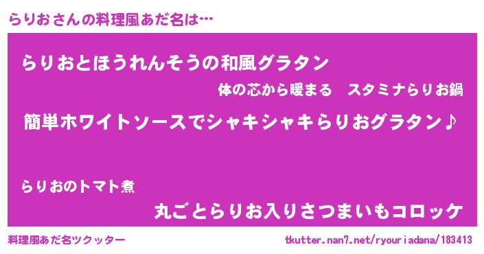 | ヘコむあだ名 | 『らりっ子』『豆乳』『らりお(笑)』 |