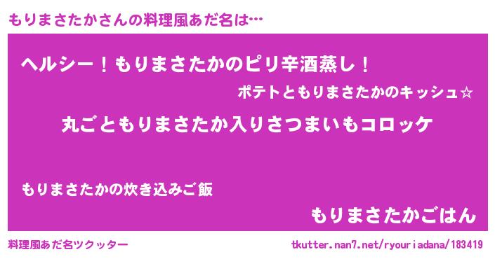 | ヘコむあだ名 | 『もりぷりん』『もりまさたか(爆)』 |