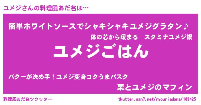 | ピコ太郎風あだ名 | 『ユメ二郎』『ピユ一郎』『ユユ太郎』 |