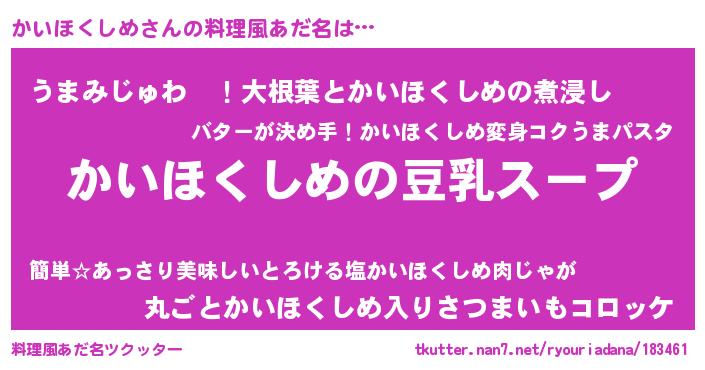| 胡散臭い通販商品みたいなあだ名 | 『信頼と実績のサプリメント…その名も「かいほくしめ」』 |