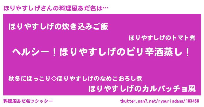 | ヘコむあだ名 | 『ほりやすしげ(笑)』『ほりお』 |