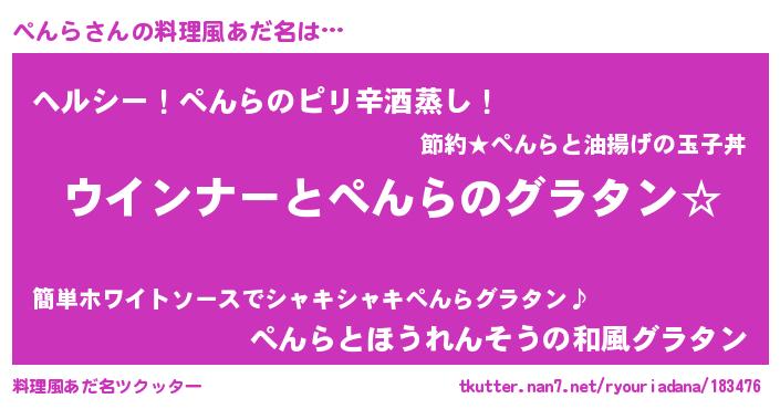 | 意味不明あだ名 | 『ぺんらフォーエバー』『自称ぺんら』 |