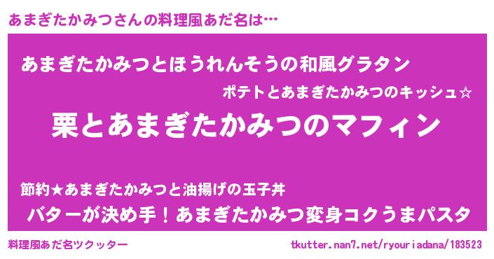 | 欧米人風あだ名 | 『アンジェラ・あまぎたかみつ』 |