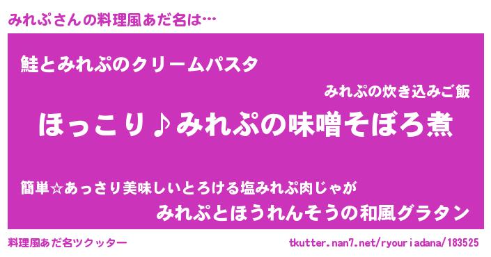 | ヘコむあだ名 | 『みれもー』『みれぷ(笑)』 |